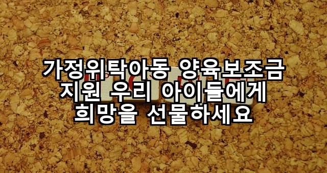 우리 사회는 이러한 아동들이 소외되지 않도록 끊임없이 노력하고 있으며, 가정위탁 양육보조금은 그 노력의 중요한 한 부분입니다. 본 포스팅을 통해 가정위탁아동 양육보조금 지원에 대한 모든 정보를 상세하게 안내해 드리겠습니다. 우리 아이들의 밝은 미래를 위한 이 따뜻한 손길에 여러분의 많은 관심과 참여를 부탁드립니다.